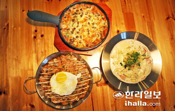 출출한 저녁시간, 가게 안을 가득 메운 음식향에 군침이 돌아 기자는 주인장에게 이곳에서 가장 맛있는 음식을 해달라고 주문했다. 김현씨는 '거기'의 모든 음식이 맛이 있다며 우선적으로 '불고기맛 떠먹는 피자(1만5000원)'를 내놓았다. 일반 도우가 있는 피자와 달리, 프라이팬에 도우 없이 나온 떠먹는 피자. 치즈는 길게 늘어났고 맛은 느끼하지도 짜지도 않았다. 피자에는 불고기와 잘게 다진 양송이가 들어가고, 더불어 주인장이 직접 만든 특제 소스가 어우러지면서 음식의 완성도를 높였다. 또 포크로만 떠 먹을 수 있어 손에 기름과 흘러내리는 소스를 닦지 않아도 돼 먹기에 편리했다.