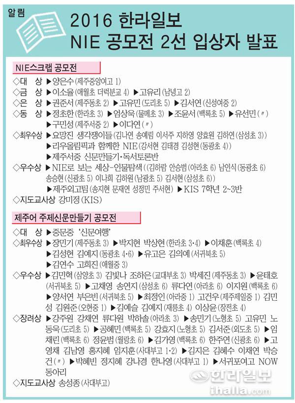 [알림]2016한라일보 NIE 공모전 2선 입상자 발표