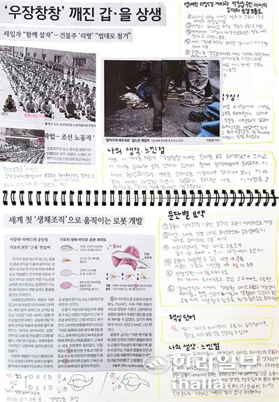 무엇보다 해를 거듭할수록 향상되는 공모전 출품작들의 '융합적 사고력'이 돋보였다. 참가자들은 신문기사를 스크랩하고 모르는 단어를 찾고, 내용을 요약한 뒤 자신의 느낌을 써가는 레퍼토리에서 더 나아가 자신의 생각을 시, 일기, 만화 등 다양한 글쓰기 갈래로 새롭게 표현하며 가치를 창조해내는 '융합적 사고력'을 오롯이 작품에 표현해냈다.