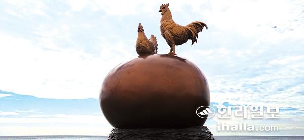 닭이 알을 품은 신산리 풍수형상을 표현한 상징물.