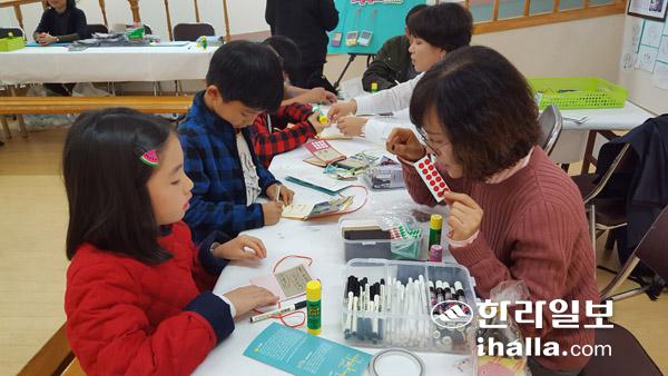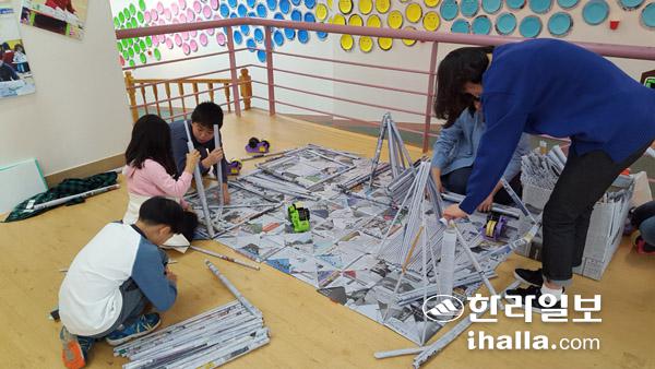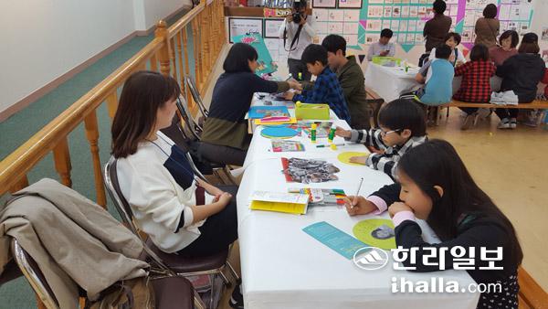 매해 다양한 NIE(Newspaper In Education·신문활용교육) 활동 작품들을 선보이고 있는 'NIE 전시회'가 8회째를 맞으며 입소문을 타고 관람객들을 끌어모으고 있다. 지난 5~6일 제주영상미디어센터 신산갤러리에서 열린 '제8회 JDC와 함께 생각을 춤추게하는 NIE 전시회'에는 가족 단위 관람객들이 찾아 성황을 이뤘다.