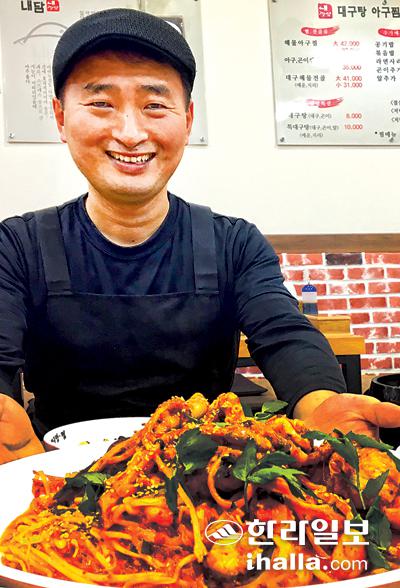호텔에서 16년간 한식 전문 주방장으로 일했던 위인석 '내담' 대표가 아귀찜 앞에서 포즈를 취했다.