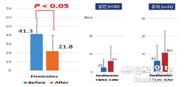 왼쪽부터 페르미쿠테스 비율, 페칼리박테리움 비율.