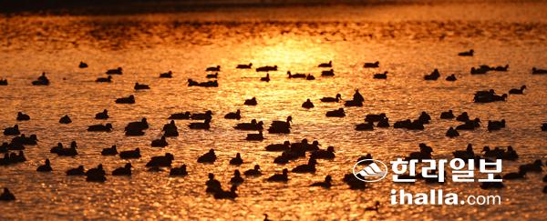철새도래지의 일출 풍경이 한폭의 그림처럼 카메라에 담겼다.