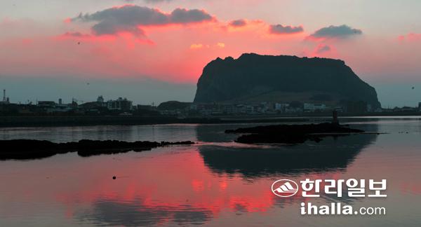 제주를 대표하는 해돋이 명소인 성산일출봉 너머로 새해 희망을 상징하듯 해가 떠오르고 있다. 사진=한라일보 DB