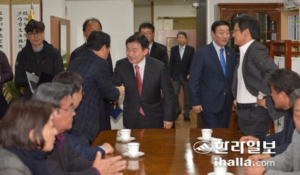 지난달 22일 원희룡 제주지사와 새누리당 소속 도의원 12명이 가진 중앙당 분당 사태 논의를 위한 회동.
