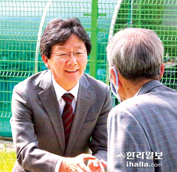 사진=불로·봉무동 경로잔치에서 노인들과 악수하고 있는 유승민 의원(유승민 의원 홈페이지)