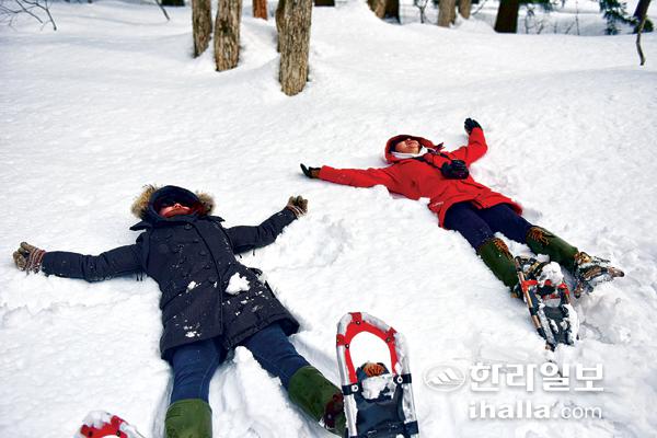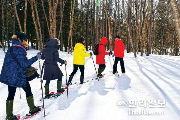 팸투어단은 눈 테이블 위에서 라면을 끓여 먹은 뒤 스노우슈(snowshoe·눈신발)를 신고 약 30분 가량 트레킹을 했다. 팸투어단은 높지 않은 경사의 코스를 걸으며 고요한 겨울 정경을 즐겼다. 이날 트레킹의 하이라이트는 무엇보다 부드럽고 폭식폭신한 눈 위에 누워 하늘을 보는 것이었다.