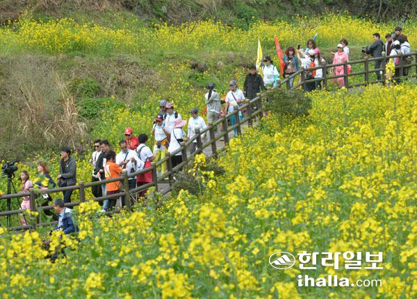 어느새 동장군이 물러가고 따뜻한 봄 내음이 찾아왔다. 누구나 이맘때 쯤엔 기지개 켜는 꽃을 보며 평화로이 거니는 상상을 하곤 한다. 때맞춰 제주도에서는 화사한 봄 길이 열린다. 이번 주말에는 가족 혹은 연인과 함께 노오란 유채를 끼고 걸어보는 건 어떨까.