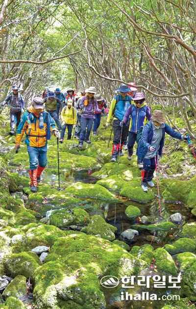 갑마장길을 올라오는 탐방객들.