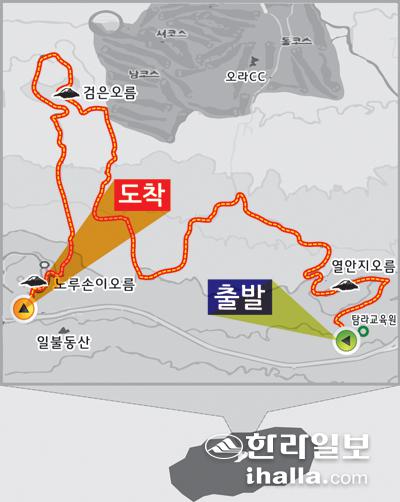 24℃에 구름 많음. 산행하기 꽤 괜찮은 날씨였다. 지난달 20일 진행된 세 번째 '2017 제주섬 글로벌 에코투어'의 여정(산록도로~열안지오름~오라올레길~보리밭길~검은오름~목장길~노리손이오름~산록도로)은 산록도로를 출발해 기러기가 줄지어 날아가는 형상서 유래했다는 열안지오름을 향하며 시작됐다. 다른 일정보다 제주시내서 가까워 이동시간이 짧다는 점이 장점이었다. 집결지인 정부제주지방합동청사에서 산록도로까지는 채 30여분이 걸리지 않았다.