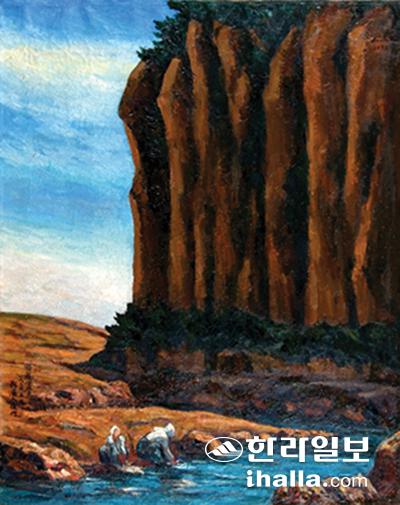 서양화가 김인지의 1935년 조선미술전람회 입선작 '애(崖)'. 제주도립미술관 소장 작품.