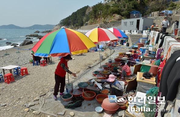 이금숙 남항동어촌계 나잠회장(71)은 "매일같이 장사를 해야 하기 때문에 날씨만 좋으면 바다에 들어간다"며 "매일 물질을 해서 물건을 잡다보니 점점 해산물을 잡기가 어려워 지고 있다"고 하소연 했다.