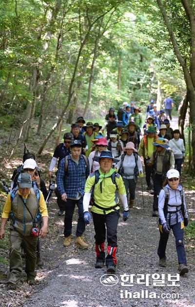 지난 17일 한라일보의 '제5차 2017 제주섬 글로벌 에코투어'는 한라산 자락에 펼쳐진 울창한 숲길을 걷는 코스로 마련됐다. 한라산둘레길에서 출발해 수악~신례천~한라산둘레길~이승이오름~종남천~숲길~표고밭길~한라산둘레길을 거쳐 다시 이승이오름으로 돌아오는 코스다.