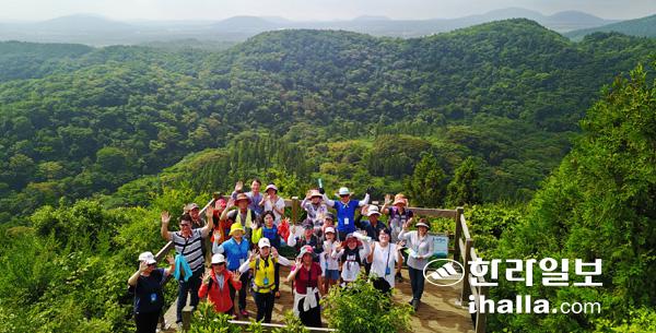 '2017 세계자연유산제주 거문오름 국제트레킹' 폐막을 하루 앞둔 휴일인 9일 제주시 선흘2리 거문오름을 찾은 탐방객들이 세계자연유산의 풍광을 만끽하고 있다. 강경민기자