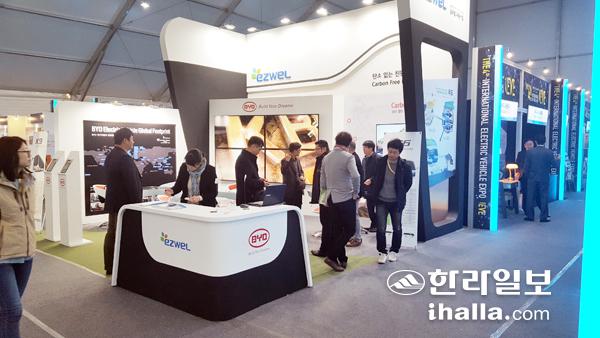 이지웰페어(주)가 제주도, 중국 BYD를 공동 사업주체로 1t 전기트럭 조립생산기지를 제주에 구축하겠다고 제안하고 나서 관심을 끌고 있다. 이지웰페어는 중국 BYD와 공동으로 제주국제전기차엑스포에 부스를 마련해 한국형 전기버스 등을 홍보 중이다. (사진=이지웰페어 제공).