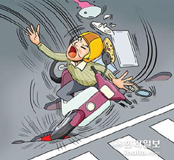 하지만 이륜차가 늘면서 배달 과정 등에서 발생하는 사고도 급증하고 있다. 연도별 이륜차 사고는 2013년 1만433건, 2014년 1만1758건, 2015년 1만2654건으로 매년 증가하고 있다. 특히 이 기간 사망자가 1206명으로 인명피해도 매우 심각한 상황이다.