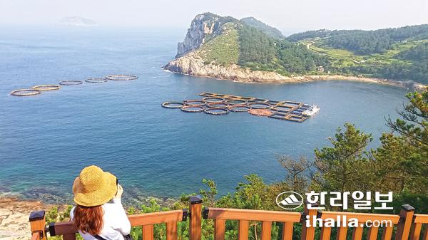 추자도가 신성장 동력으로 관광분야와 양식섬 추자도를 지향하고 있다. 섬에서 바라 본 바다 양식장 전경. 백금탁기자