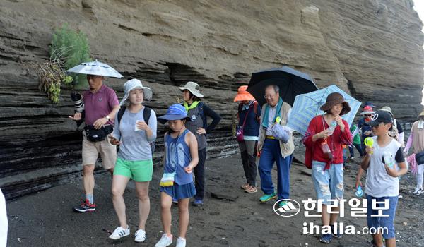 주말과 휴일을 맞아 제주도민은 물론 내·외국인 관광객들이 화산학의 교과서로 불리는 세계지질공원 수월봉 일대 탐방에 나서 지질명소의 진가를 만끽했다. 강희만기자
