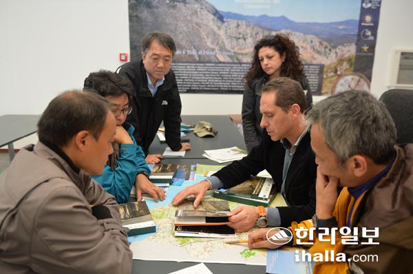 시렌토 국립공원 관리청 관계자들이 취재팀과 대화를 나누고 있다.