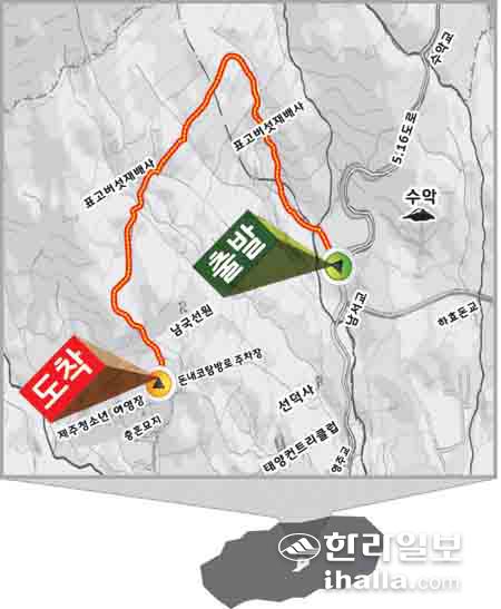 휴식 뒤 숲길을 따라 다시 오르는데, 아무리 올라가도 정상이 나오지 않았다. 한 탐방객이 "이번 코스엔 오름은 없었지만 대신 산이 있었다"고 농담을 하면서 우리의 발걸음을 가볍게 해 주었다. 그러고도 한참을 더 올라 한라산둘레길에 이르러서야 탐방객들은 '알면서도 또 속았구나' 하며 안도의 한숨을 쉬었다. 일반적인 길이 아닌 드물고 낯선 곳을 걸으며 익숙한 코스를 찾아내는 과정은 에코투어만이 가진 특별한 매력이다.
