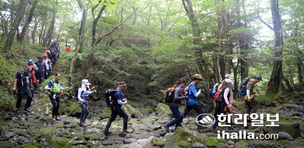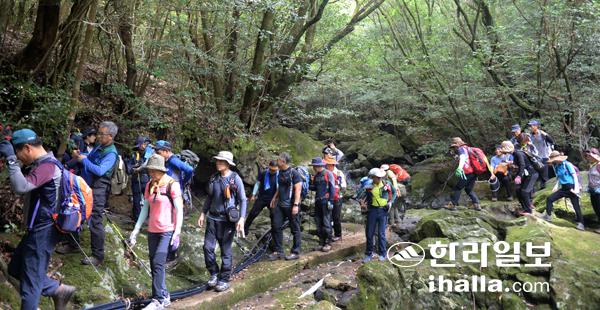 탐방객들이 한라산 둘레길을 걷고 있는 모습. 강희만기자