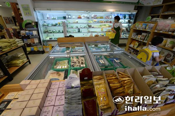 제주시 노형동에 위치한 한살림제주 노형매장에서 한 주부가 장을 보고 있다. 강희만기자
