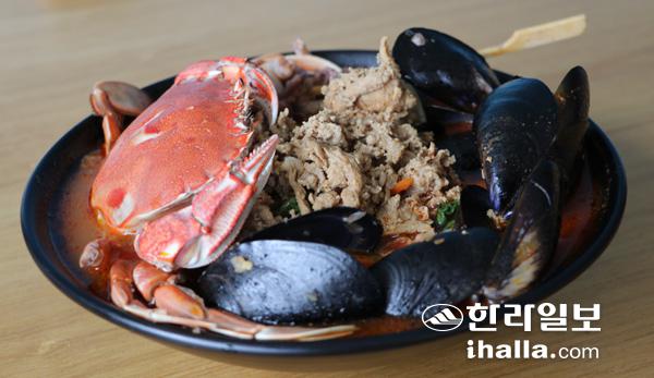 로켓버거가 다소 느끼해질 무렵, '불게짬뽕'의 얼큰한 국물은 이를 말끔히 해소시킨다. 짬뽕 또한 로켓버거의 비주얼에 뒤지지 않는다. 짬뽕 위에는 불게 한 마리가 통째로 올려졌고, 홍합이 푸짐하게 들어갔다.