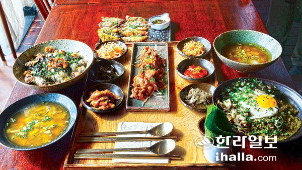 제주시 아라2동에 위치한 '오롯'은 전복과 꼬막, 성게 등 해산물을 이용한 다채로운 비빔밥을 판매하는 식당이다. 주인장이 직접 설계하고 주문 제작한 그릇과 고가구 느낌으로 구성된 내부 인테리어는 이곳이 밥집이 아닌 그릇가게나 꽃집이라는 착각을 하게 만든다. 오롯은 문을 연지 5개월 밖에 되지 않은, 이제 막 걸음마를 뗀 당찬 맛 집이지만 가게 분위기는 이름 그대로 모자람 없이 온전한 느낌을 줬다.