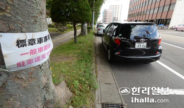 아키타 시청 뒤편으로 돌아가니 노상주차장은 차가 텅텅 비어 있었다. 바로 고령운전자 표지가 없으면 주차할 수 없는 고령자 전용주차장이기 때문이다. 아키타시는 고령자들이 타고 내리기 편리하도록 시청과 가까운 곳에 전용주차장을 설치했다.