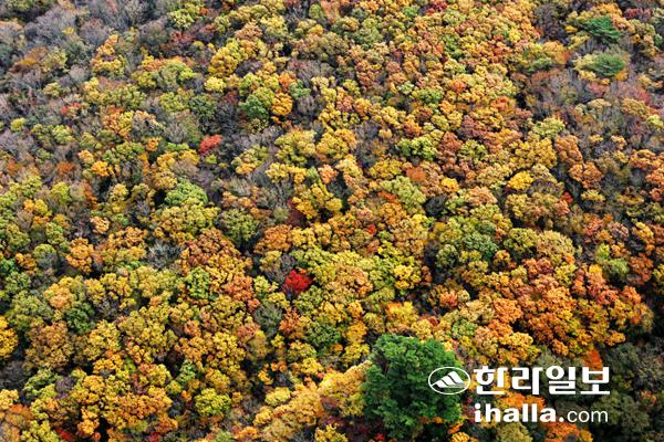 완연한 가을 날씨에 접어든 제주,물결처럼 흐르는 오름 능선따라 바람에 흔들리는 은빛 파도산굼부리·따라비오름 등에선 억새 물결이 거대한 '바다' 떠올려울긋불긋 물드는 한라산산허리마다 붉게 타는 나뭇잎… 그 길에서 만나는 깊어가는 가을
