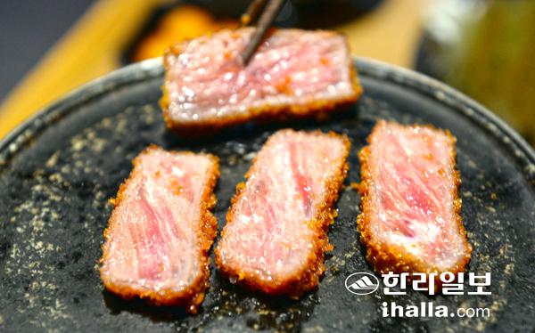 그냥 구워 먹어도 맛있는 고기를 살짝 튀겨냈으니 맛있는 건 당연. 튀김옷의 고소함을 느끼기도 전에 소고기의 감칠맛나는 육즙이 입안에 넘쳐 흐른다.