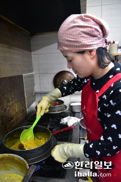전복죽을 하고 있는 김정자 해녀의 큰 며느리.