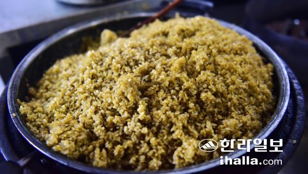 미리 불려 볶아놓은 쌀. 하루에 쓰이는 양이 엄청나다.