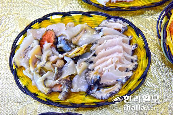 또 그날 채취한 홍삼, 해삼, 소라, 낙지 등을 썰어내는 해산물모듬도 인기 메뉴다. 어머니 김씨는 큰 소라들을 취재팀에 내보였다. 제주에서 만났던 '뿔소라'와는 달리 뿔이 나있지 않았다. '뿔소라'가 씹히는 맛이 더 좋다면, 김씨가 내보인 소라는 분홍빛이 더 강하고 부드럽게 씹힌다.