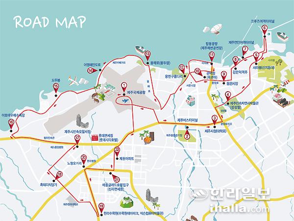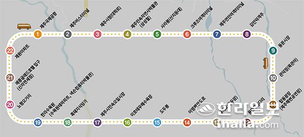 매일 오전 9시부터 매 시간 정각에 제주공항에서 첫차가 출발하며 사라봉, 동문시장, 용연구름다리, 어영해안도로, 한라수목원 등 약 2시간 동안 원도심부터 신제주까지 제주시내 주요 관광지를 경유해 공항으로 돌아오는 코스로 구성됐다.