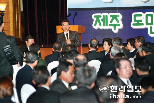 2003년 10월 31일 라마다프라자 제주호텔에서 제주도민과의 대화를 통해 지난 1948년 발생한 제주 4·3사건으로 무고한 희생자가 발생한데 대해 공식 사과하고 있는 고(故) 노무현 대통령. 한라일보 DB