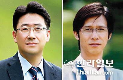 왼쪽부터 김덕진 학과장, 안근재 주임교수.