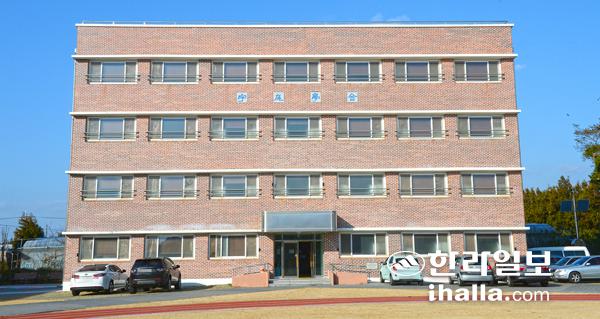 2015년 3월부터 운영된 서귀포여고 우정학사는 건축면적 총 1332㎡에 지상 4층 규모로 조성됐다. 학생 100명을 수용할 수 있는 기숙사 27실을 비롯 학습실과 세탁실, 샤워실 등을 갖췄다. 사진은 우정학사가 들어선 서귀포여고 전경. 강희만기자