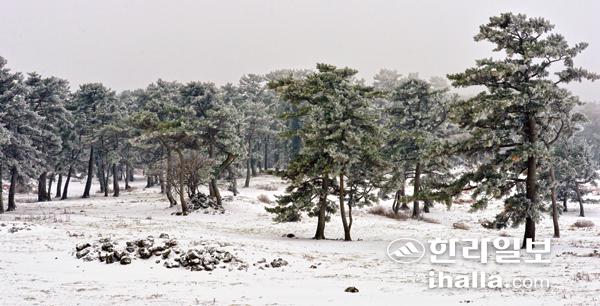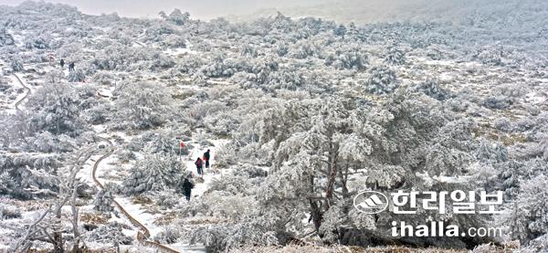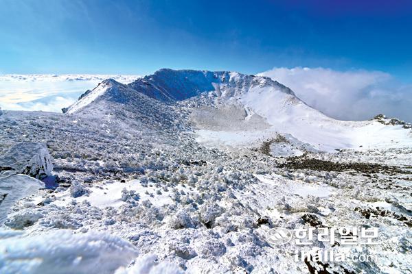 하얀 눈으로 뒤덮인 한라산 만세동산 일대. 사진=한라일보 DB