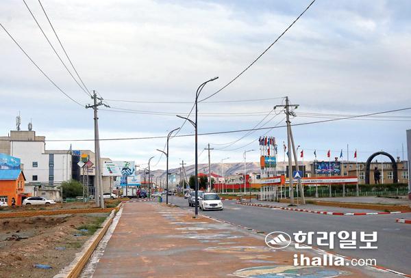 알타이로 오는 길은 끝없이 뻗어 있는 아스콘 포장길이다. 직선으로 건설된 도로는 마치 초등학생 시절 원근법을 배울 때 선생님이 칠판에 그려 보여주듯이 두 개의 평행선이 저 멀리서는 하나의 점으로 합쳐지는 바로 그런 길이다. 이 길도 만들어진 지는 얼마 되지 않았다. 지표면이 평평한 사막이긴 하나 그래도 요철은 있게 마련이어서 군데군데 깎고 메운 흔적을 볼 수 있다.