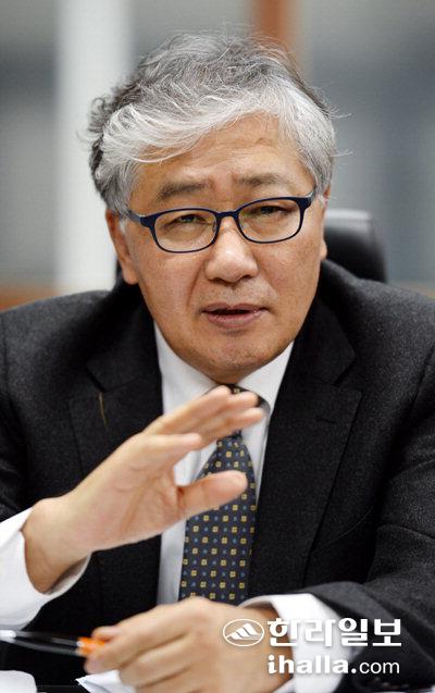 18일 제주연구원 원장실에서 김동전 제주연구원장의 인터뷰가 진행됐다. 강희만기자