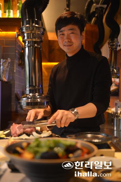 직접 고기를 구워주고 있는 주인장 박지현씨의 친동생 박진섭씨.
