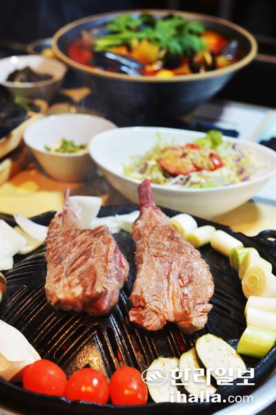 설명을 듣다 보니 빨리 먹어보고 싶은 마음이 생긴다. 서둘러 주인장을 재촉해 인기있는 메뉴를 부탁했다. 곧바로 화로와 투구형 불판이 준비됐고, 보는 것만으로도 먹음직스러운 양갈비가 나왔다. 고기를 구워주는 것은 주인장 박지현씨의 친동생 박진섭(35)씨가 나섰다.