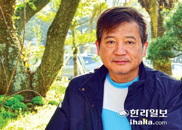 제주4·3을 끈질기게 시로 그려내고 있는 김경훈 시인이 4·3유적지 기행 중에 잠시 휴식을 취하고 있다.