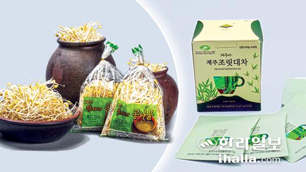 사회적기업인 '(주)제주살림'이 판매하는 제주항아리 콩나물콩(왼쪽)과 '제주다'가 만든 제주조릿대차(오른쪽).