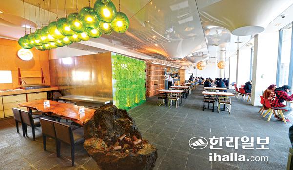 사회적기업인 (유)섬이다가 제주시 용담해안도로에서 운영하는 로컬푸드 레스토랑 '닐모리동동'의 내부는 제주를 담기 위해 초가와 돌담, 오름, 테왁을 형상화해 꾸몄다. 강희만기자