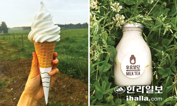 제주시 한림읍 성이시돌목장의 유기농 우유로 만든 아이스크림과 밀크티.