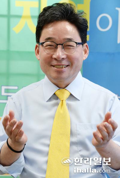 ▶도지사 출마 이유는=개발특별법을 만든 지 30년 가까운 세월이 흘렀다. 지역경제 총량 증대라는 긍정적 평가 이면에 물가·땅값상승률·범죄율·이혼율 전국 1·2위권, 난개발로 인한 환경파괴, 도민 삶의 질·생활 만족도 저하라는 결과를 안게됐다. 이제 지난 시대의 오류를 철저히 분석해 다가올 100년을 준비해야 한다. 제주는 새로운 변혁이 필요하다. 도정과 도민의 삶 한가운데서 살아온 경험을 바탕으로 도민 중심의 행복 도지사의 역할을 수행하고자 한다.