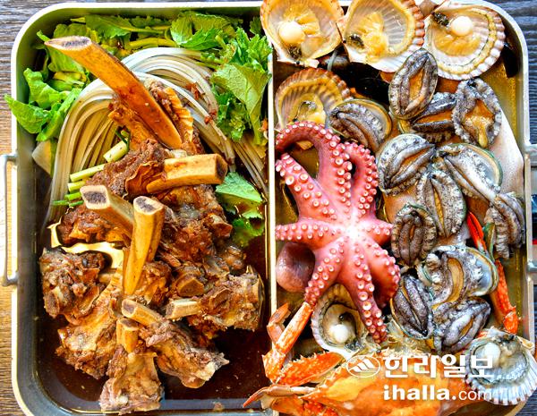 달달한 소왕갈비찜은 아이들이 칼칼한 짬뽕전골은 어른들이 즐기기 그만이다. 두 메뉴는 제주시 아라동에 위치한 퓨전 중화요리집 '뽕갈찜'에서만 먹을 수 있다.